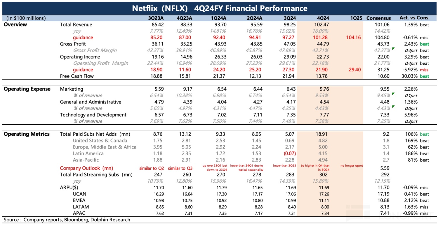 奈飞:高效投资,娱乐前景还很广阔(4Q24 电话会纪要)