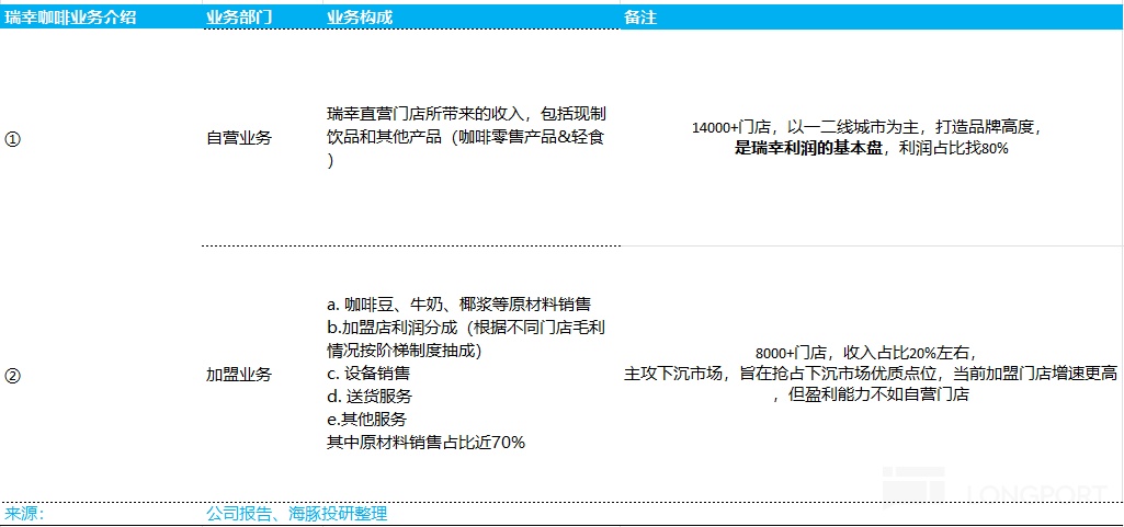 根据瑞幸咖啡披露口径,公司分为自营业务、加盟业务两大业务条线