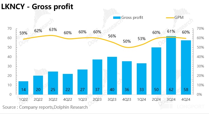 月活跃付费用户数持续提升。Q4 公司月活跃付费用户数 7780 万人,同比提升 24.5%,在补贴力度持续放缓的背景下公司付费用户持续提升再次印证了瑞幸的核心客户群体价格敏感度较低,对瑞幸的品牌粘性较强。