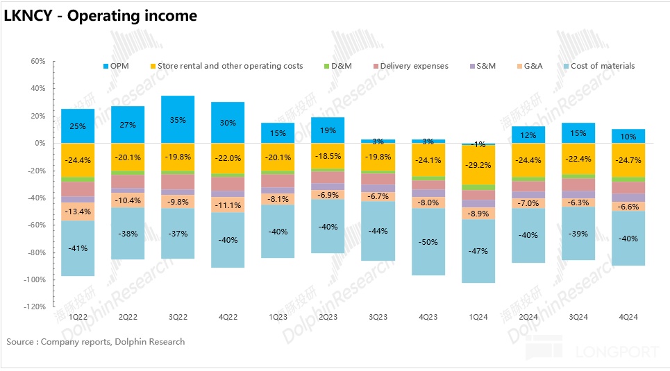 毛利率上,由于极端天气原因使得咖啡豆价格超预期上涨(Q4 咖啡豆价格再度上涨 25%,全年累计上涨超 70%),尽管公司通过提前锁价等方式对冲,但毛利率仍然小幅不及预期。