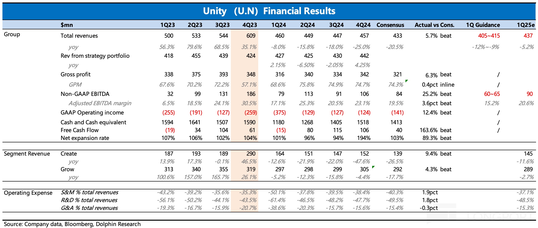 以下$Unity Software(U.US) 2024 四季度的财报电话会纪要,财报解读请移步《被 Applovin 压太久?Unity 未起先嗨!》