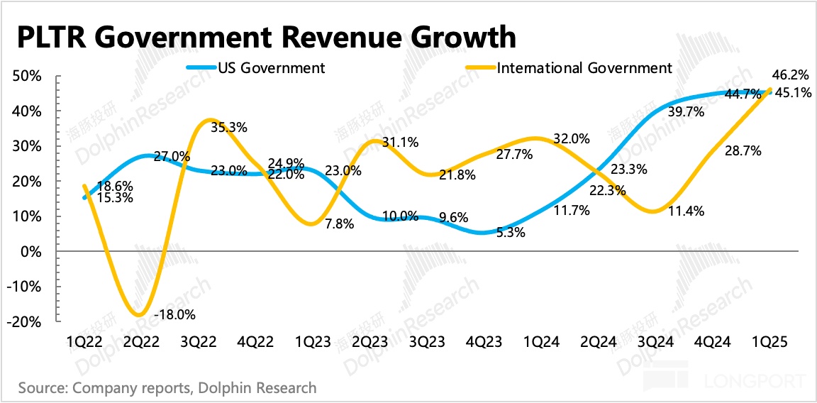 Q1 政府收入同比增长 45%,增速加快,这次是美国和国际政府双驱动。