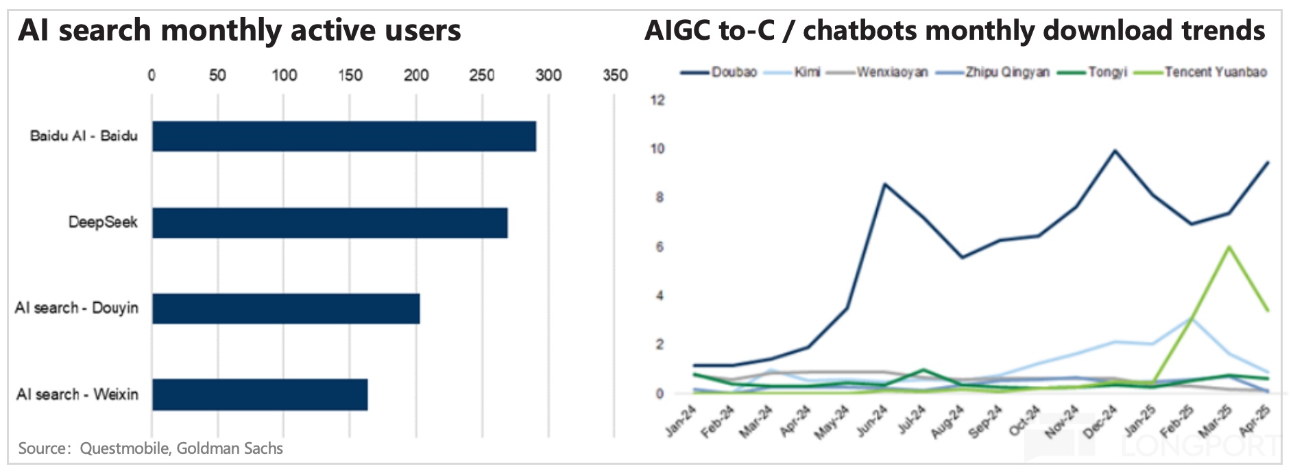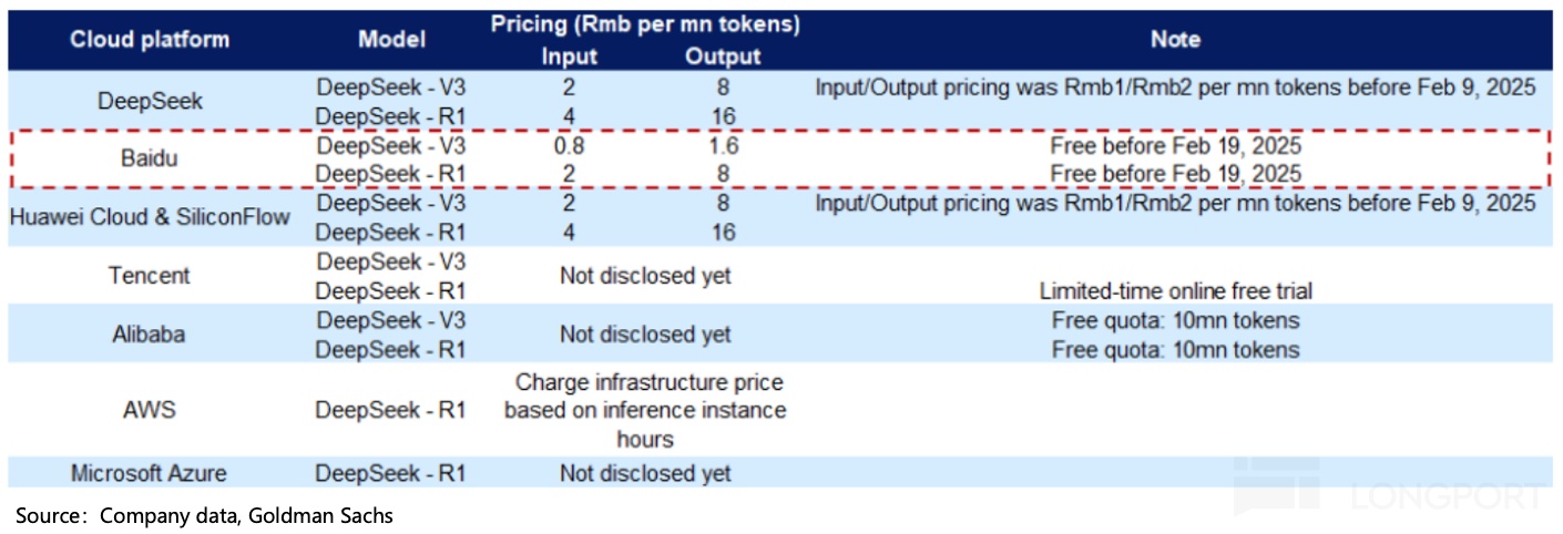2. 用户增长 “久旱逢甘霖”:除了云,手百的流量也是 DeepSeek 的受益者。2 月中旬 DeepSeek 满血版接入百度搜索,激活了存量用户活跃度,手百月活直接环比净增 4500 万,达到了历史新高的 7.24 亿。