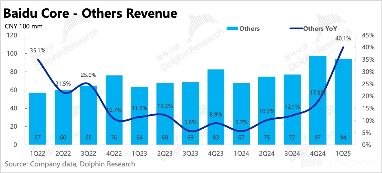 除智慧云之外的其他业务上,也就是小度、智慧交通、自动驾驶等业务,一季度主要由于并表了 YY(预估 5 亿收入),同比增长 35%。