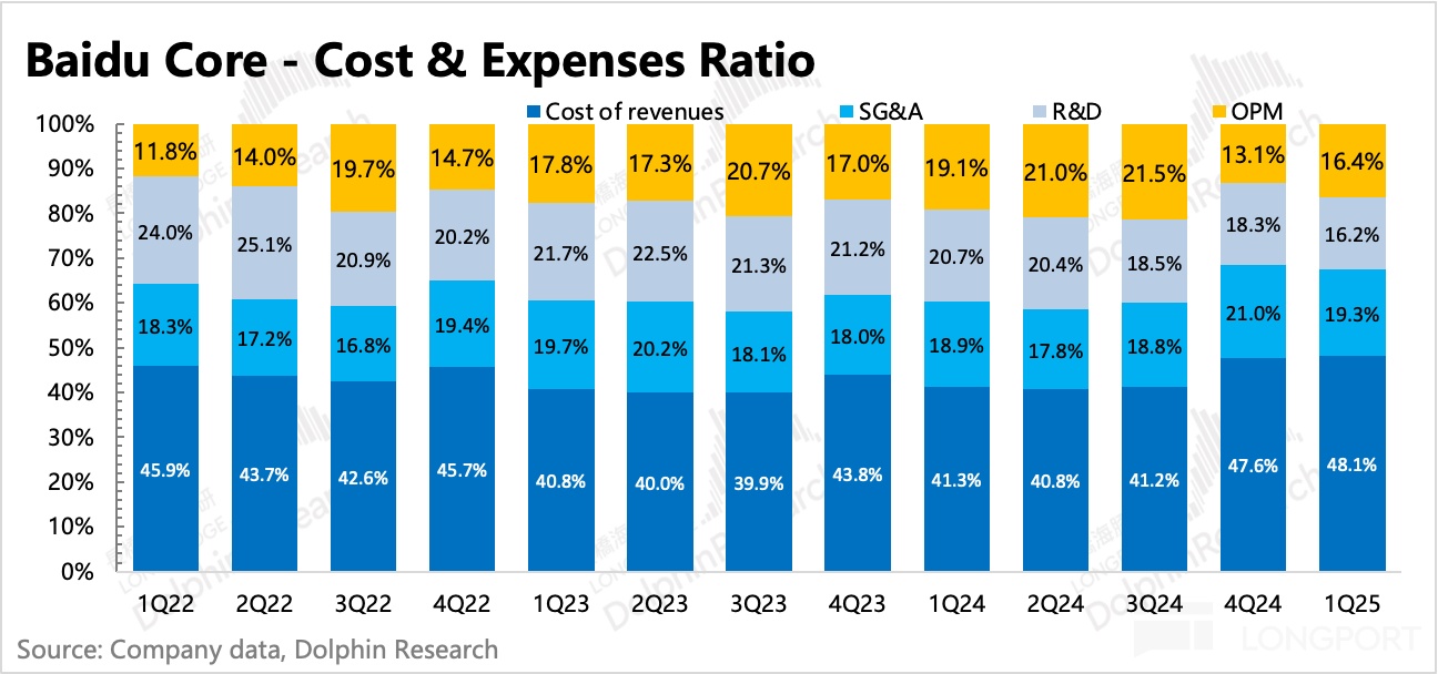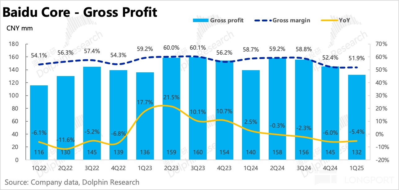 3. 广告实际不佳,只能看 AI 搜索变现补缺:广告是预期之中的承压,同比下滑了 6%。虽然符合公司给的指引,但鉴于一季度宏观环境没有想象中的差,因此部分机构在上个月其实微微上调了百度广告的表现。这就导致从预期差的角度,广告收入也不好。