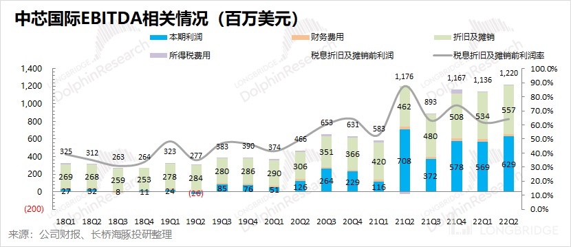 从 EBITDA 的角度看,二季度中芯国际税息折旧及摊销前利润达到 12.20 亿美元,继续维持高位。