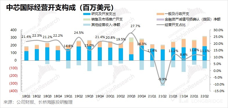 从经营开支角度看,本季度中芯国际经营开支是 2.11 亿美元,环比基本持平。