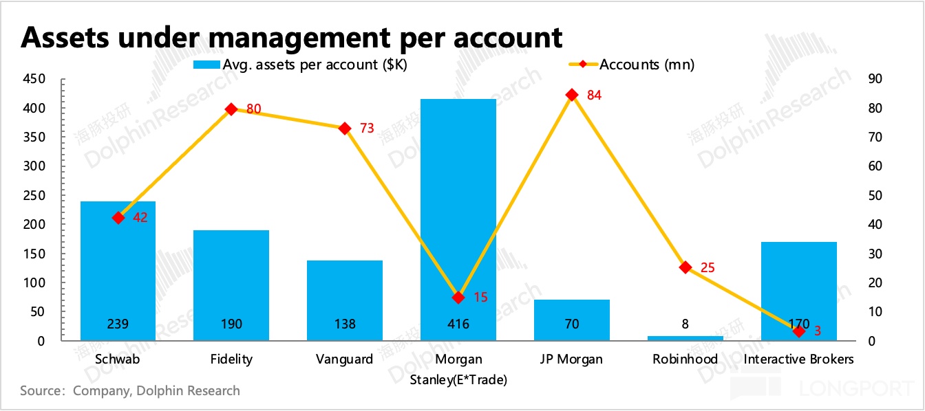 (2)传统投行里面,有银行业务优势的小摩总账户数非常高,有8400万;