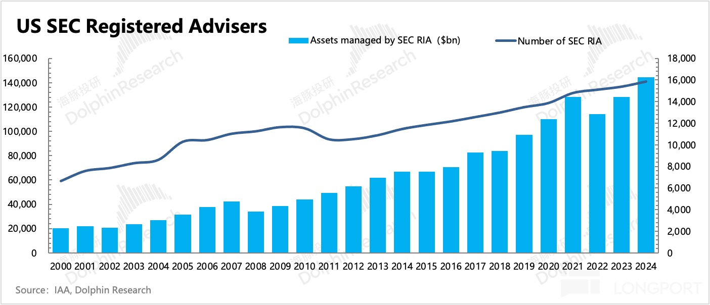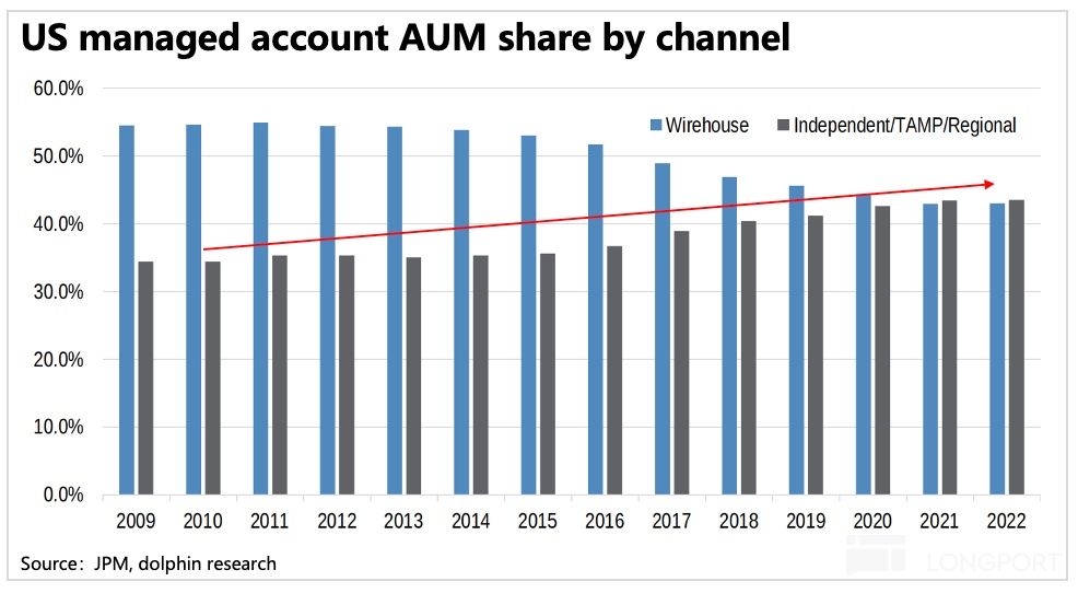 2)供给方面:产品供给(共同基金、ETFs)和服务供给(独立投资顾问)兴起
