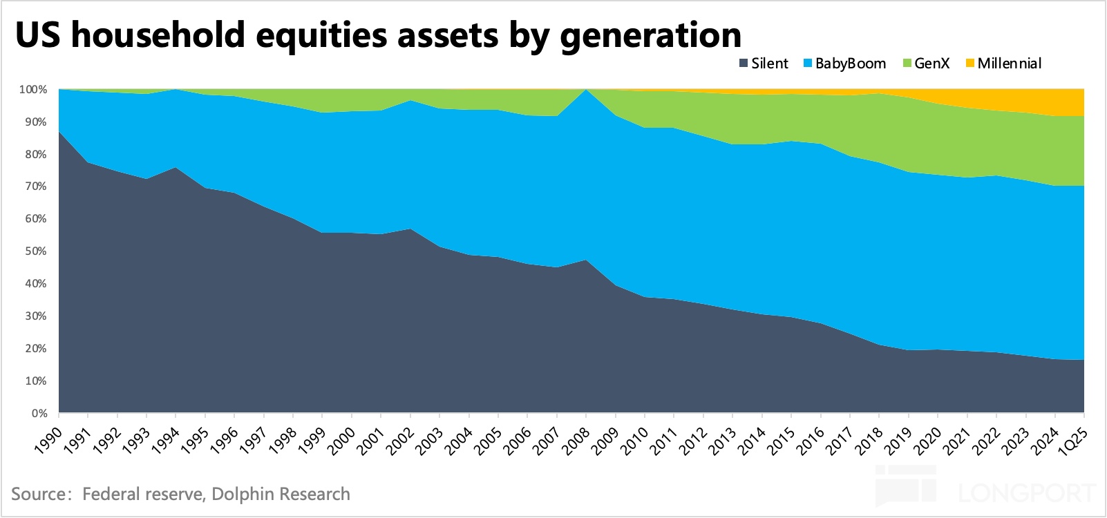 但随着互联网券商标杆——E*Trade、TD Ameritrade分别被大摩、嘉信收购,而人群总量不占优势的千禧族财富规模还在起步阶段,嘉信主导下的婴儿潮、X世代大众金融平台,至今依然保持着霸主地位。