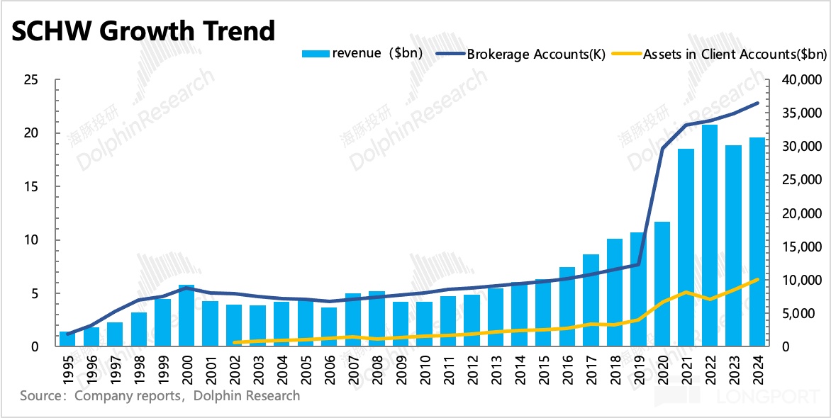 海豚君认为,及时转型财富管理是嘉信能够跨越多代券商变革,仍然屹立不倒并持续向上攀爬的关键一步。