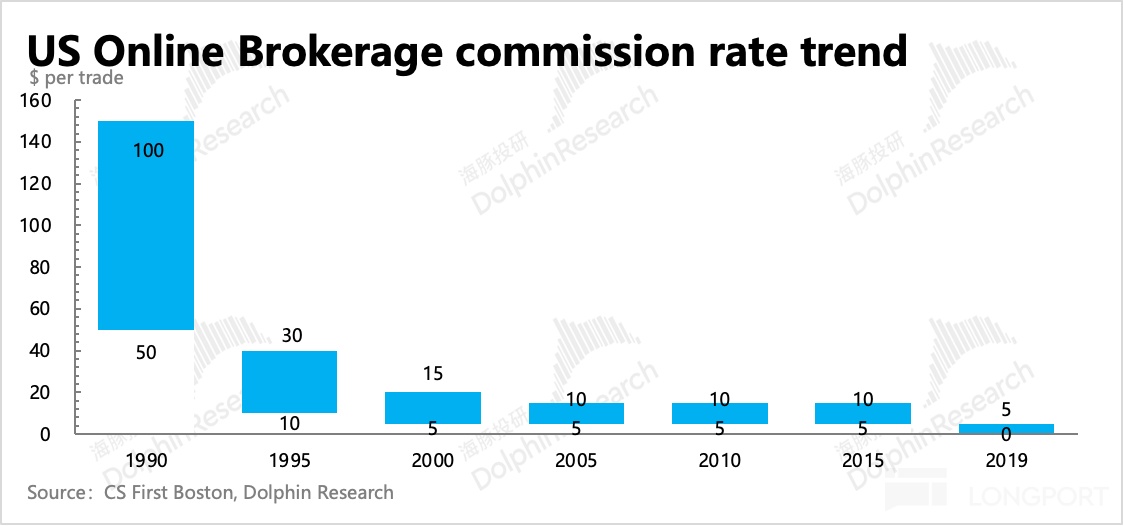 届时传统券商的高固定佣金,往往包含着研究咨询等服务,对于机构客户而言,可以利用交易规模优势,谈到一个更友好的“研究服务+交易佣金”打包价。但对于当时的普通散户而言,如果可以用更低的佣金来完成交易,宁愿取消额外的研究服务。