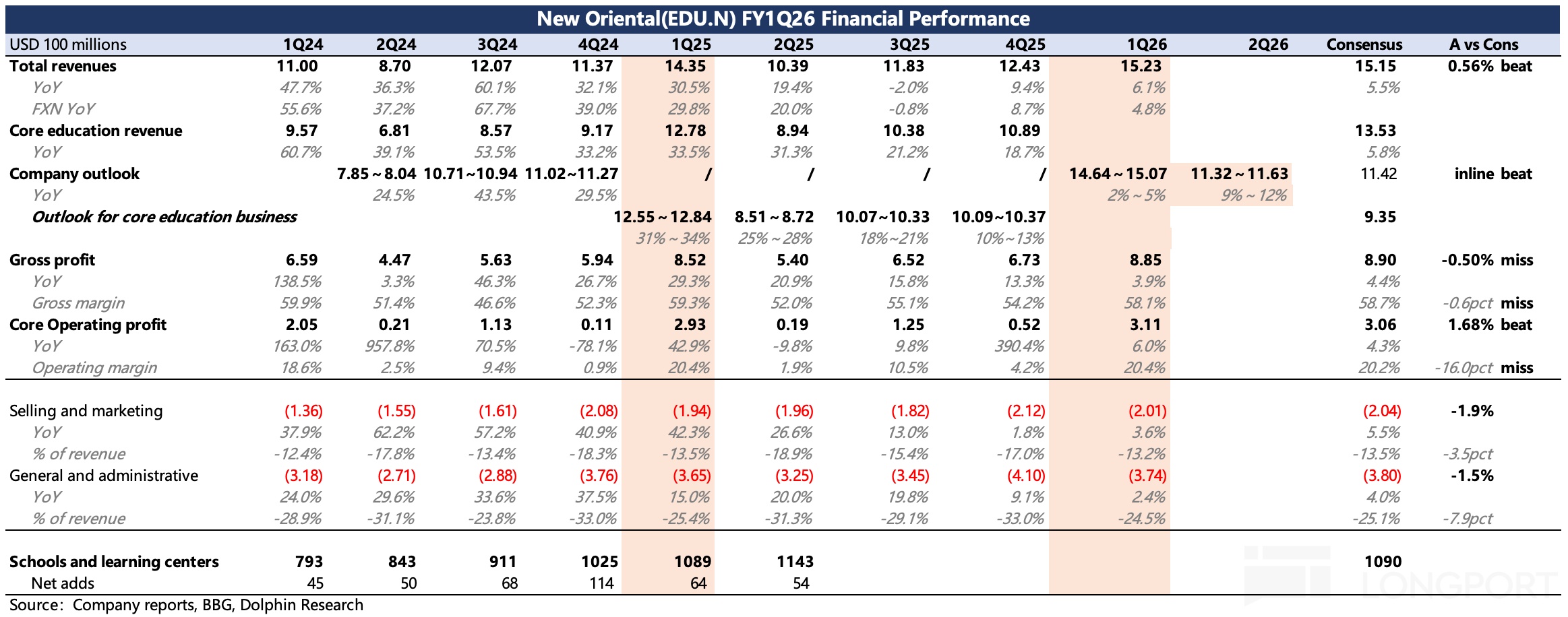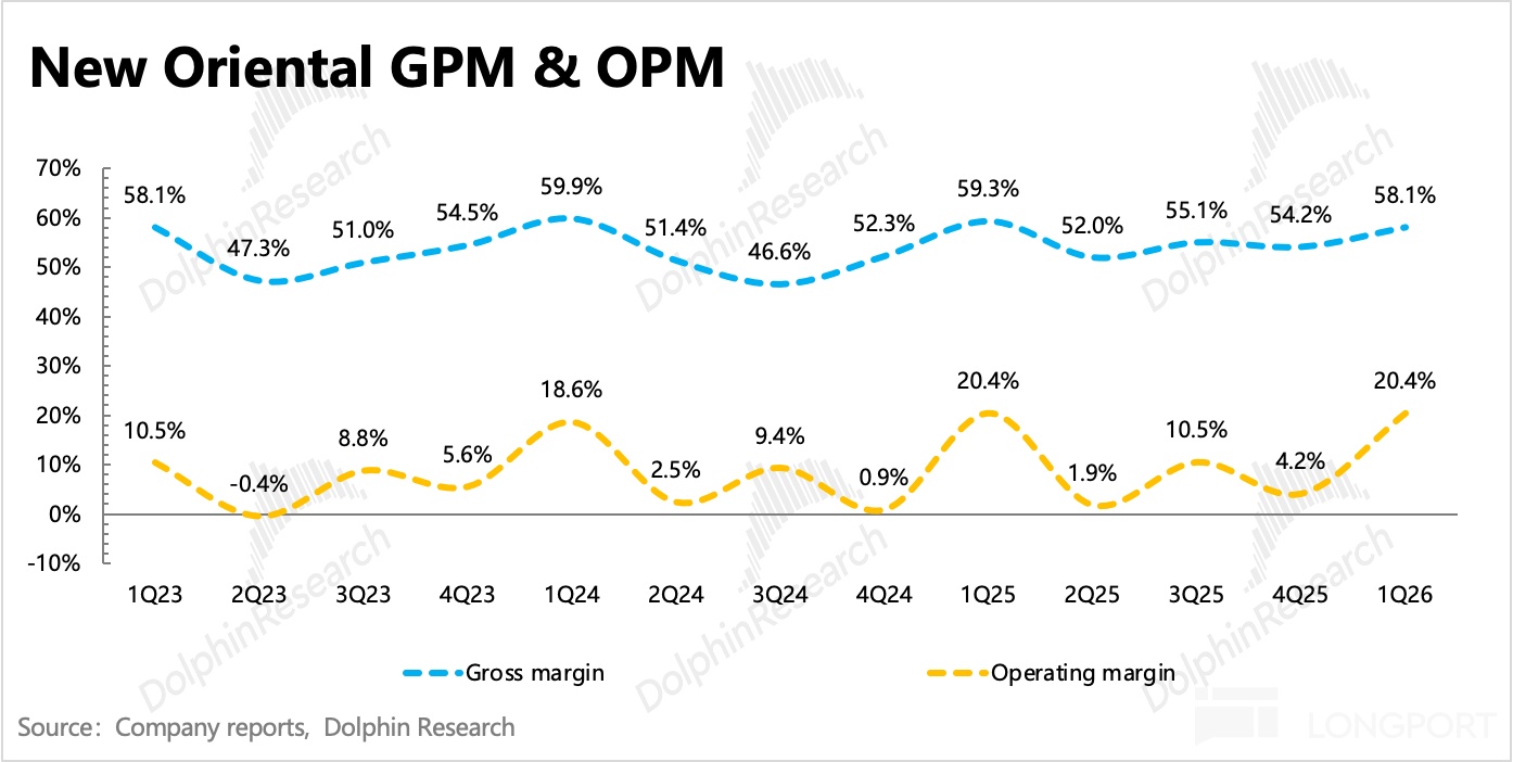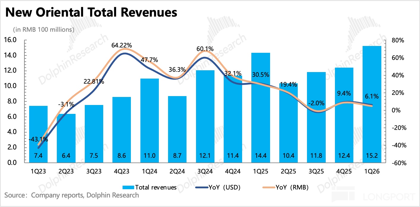 $新东方(EDU.US) 北京时间 10 月 28 日美股盘前发布了 2026 财年第一季度的业绩,这个对应的是自然年下 2025 年 6 月至 2025 年 8 月的暑期旺季的经营情况。