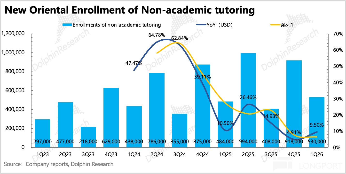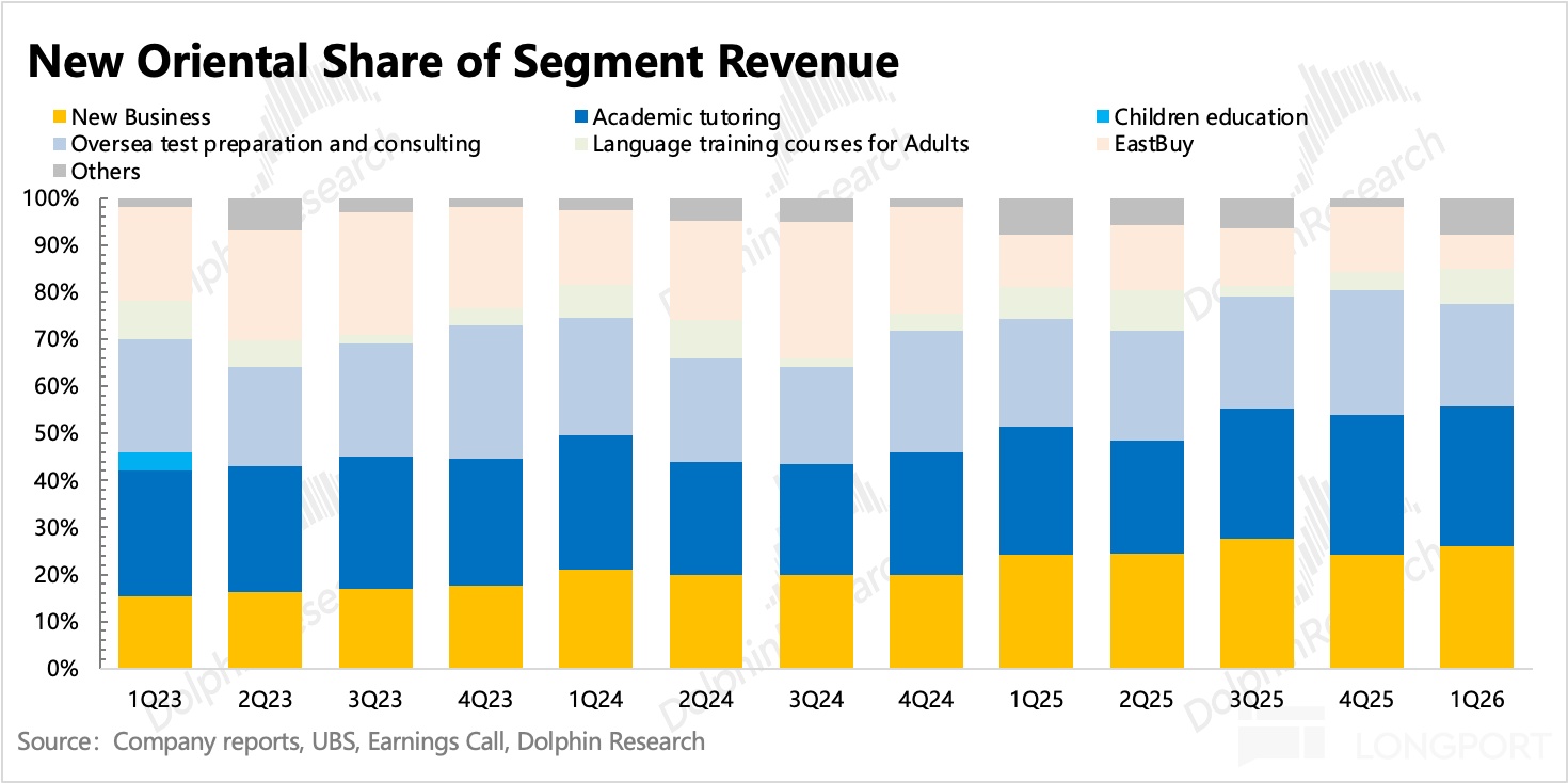 4、全年指引不变:目前 2026 财年收入指引仍是 5%~10% 的同比增长(和上季度一样),只能打消留学业务不受控恶化的担忧。但从趋势上看,下半年在新业务的增速回暖下,管理层对留学业务的风险预留了更多的缓冲空间。