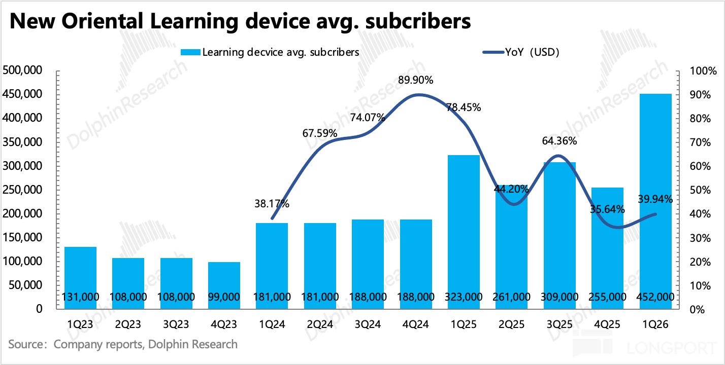 2)成人英语:增长 14%,vs 上季度的 17%,增速有所放缓,但比公司原预期要好,也是细分业务相对稳定的一项了。