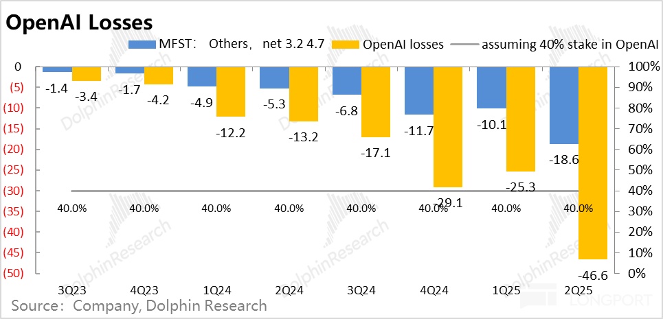 尤其考虑到,当下 AI 产业链的高增有部分是建立在产业 “供应链内循环” 订单 + 上下游利润巨大鸿沟之上:2026 自然年英伟达一年 2200 亿美元的预期利润 vs 2025 二季度 OpenAI 的年化亏损可能已经在 150-200 亿美金之间。