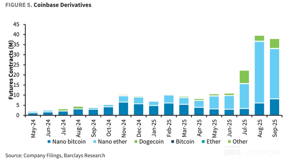 不过随着 Deribit 正式完成整合,Coinbase 有望通过衍生品交易弥补这个天然缺口,推动市占率修复。如下图,8、9 月衍生品交易规模已经显著高于前面。