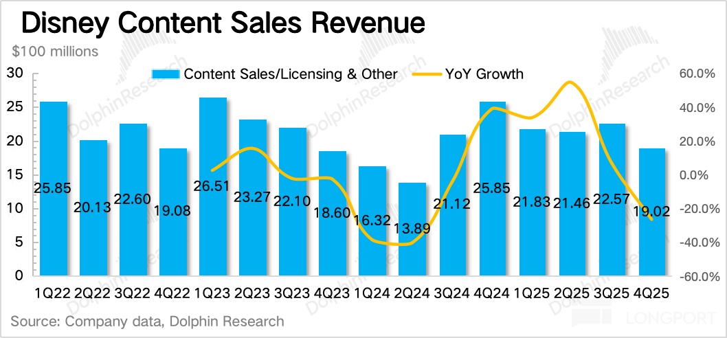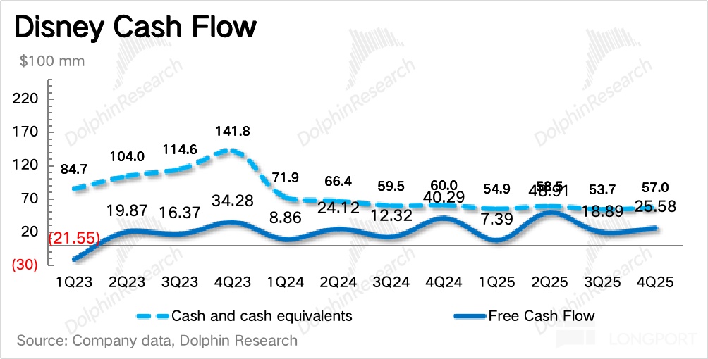 4. 内容周期仍未结束:四季度内容销售收入下滑 26%,主要由于去年同期有《头脑特工队 2》和《死侍与金刚狼》两个全球 TOP2 爆片带来的高基数。但内容周期并非已经结束,公司 2026 财年的片单仍然丰富,将陆续迎来《疯狂动物城》、《阿凡达》、《玩具总动员》、《穿普拉达的女王》等多个 IP 续作。
