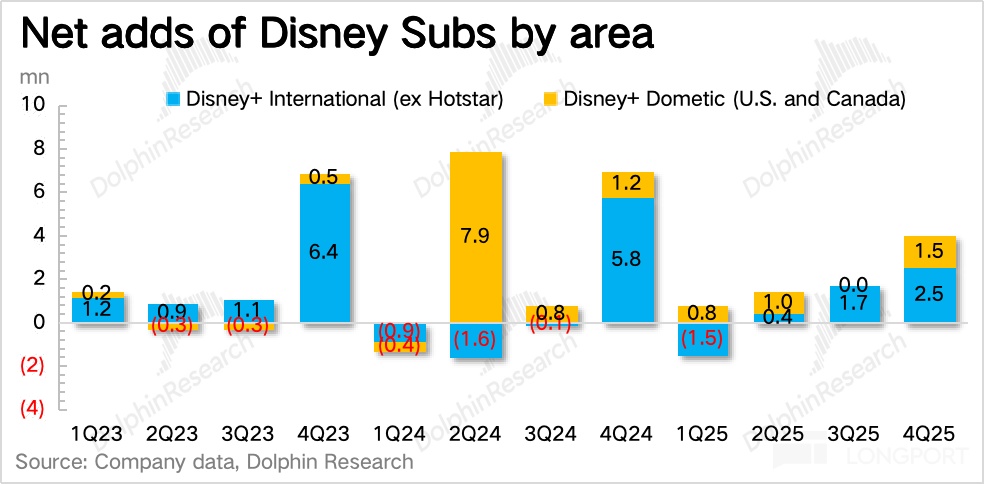 3. ESPN 新版本反馈良好:四季度体育业务增长持平,符合预期。除了本身收视率下滑导致增长缓慢外,印度 Star 重组影响(剥离后体现在投资收益中)也在周期内。但融合了有线和流媒体内容的新版 ESPN 目前运营得不错,订阅增量主要来自于: