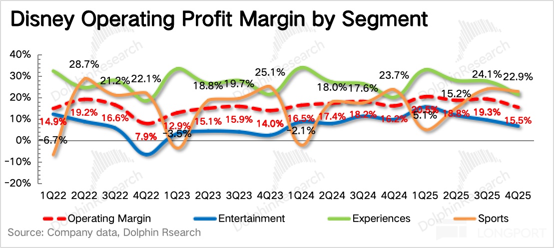 (1)【娱乐】业务包含:原有线渠道、DTC(除 ESPN+ 以外)、内容销售,同时处置了一些部门整合过程中重复的业务线以及收益偏低的传统渠道。