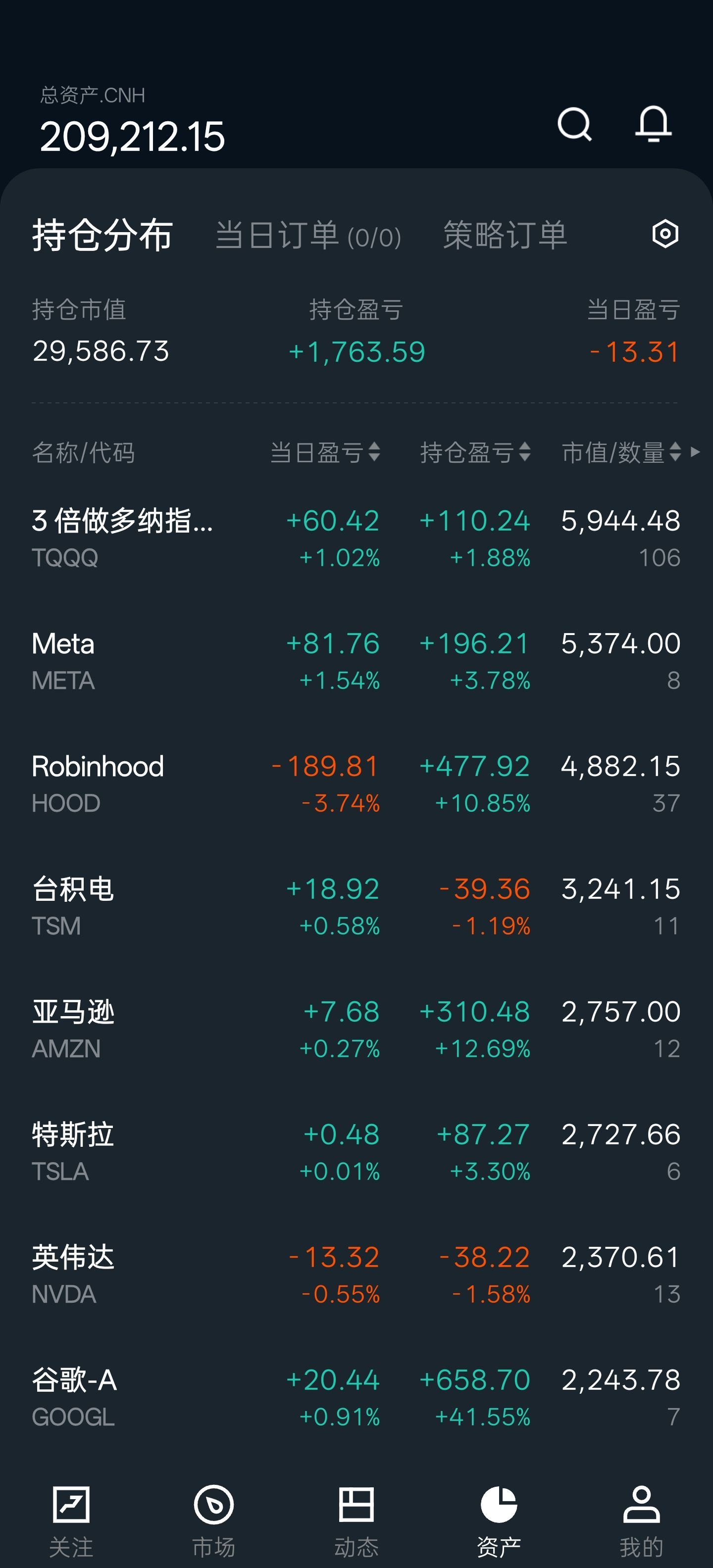 TQQQ: 106 股 (这个是听人说能三倍做多,我就买了...)