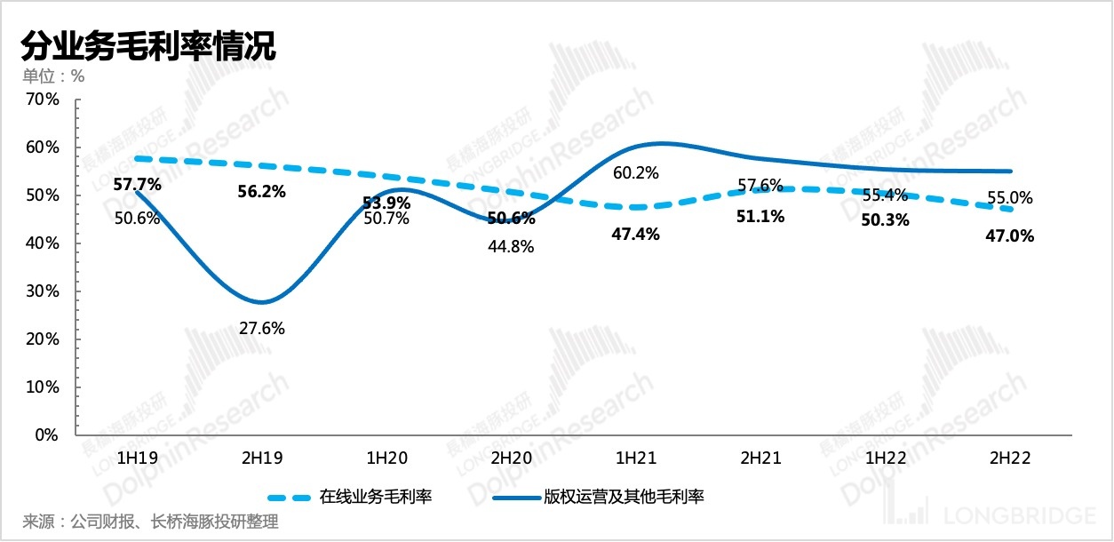 这两年毛利率因为收入结构的改变而有所优化,几乎无成本的游戏分销收入、高毛利的广告收入增加,对整体在线业务的毛利率带来小幅提升。