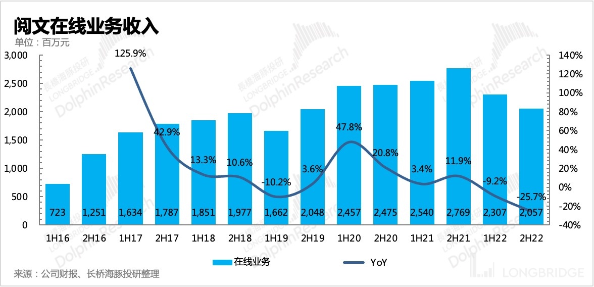 三、阅读承压加上游戏受版号影响,共同拖累在线业务