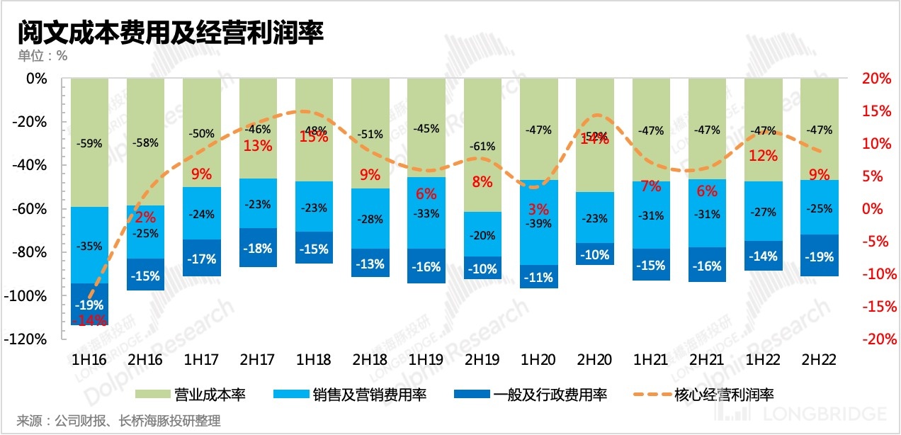 去年全年,阅文一直在砍各项支出。除了减少获客投放外,也主动放弃了一些投入产出比不高的平台合作和传统业务,因此利润率也能够看到在逐步改善。