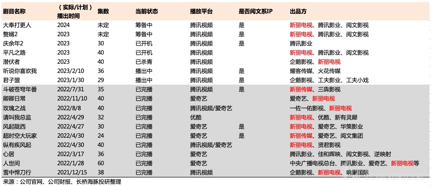 由于疫情对影视制作带来不小的扰动,排期上全年 7 部电视剧作品有 5 部集中在上半年播出,并且全年两部电影也都在上半年上映,因此新丽下半年的收入并未像往年一年远高于上半年(一般重点影视作品会放在暑假期间播出)。