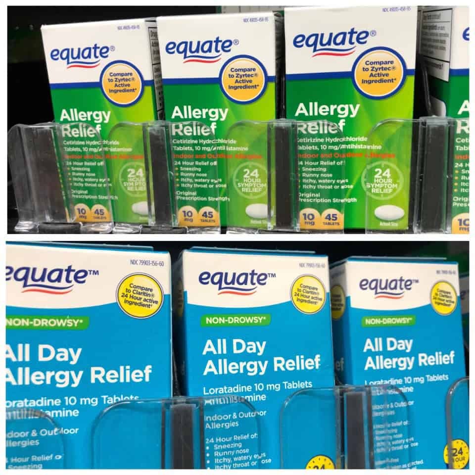 購買沃爾瑪的 Equate 品牌過敏藥可以節省不少錢。在六週的供應中節省超過 20.00 美元,一年下來可達 173.00 美元/240.00 美元。將這個數額乘以需要每天服用過敏藥的家庭成員人數,節省是驚人的。那麼為什麼要在名牌上多花那麼多冤枉錢,當通用品牌含有相同的藥物?包裝可能沒有那麼花哨,廣告宣傳也不存在,但這正是保持價格低廉的原因。