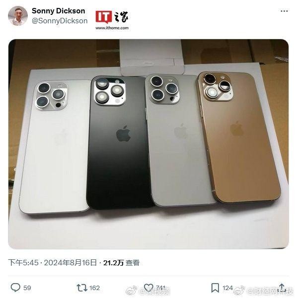 According to IT Home, a source named Sonny Dickson posted on X platform on August 16th, sharing photos of the Apple iPhone 16 Pro Max model, with the most notable addition being the new bronze color.