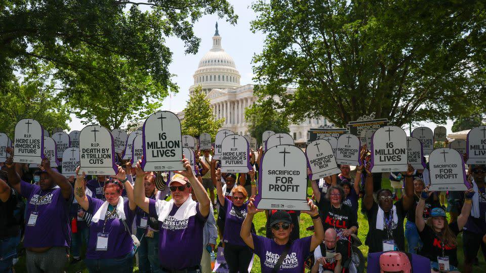 2025 年 6 月 23 日,服務員工國際聯盟的護理工作者在美國國會大廈抗議。- Tasos Katopodis/Getty Images for SEIU