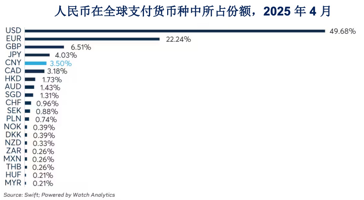 The bank stated that by April 2025, China's share of the global SWIFT payment market will reach 3.5%, up from 2% in 2023. In terms of trade, 6% of global commercial activities will be settled in renminbi in 2024, also an increase from less than 2% in 2023.