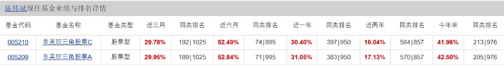 As seen from the above image, Dongwu Double Triangle Stock A and Dongwu Double Triangle Stock C both experienced a rapid increase in returns after being managed by Chen Weibin in April this year.