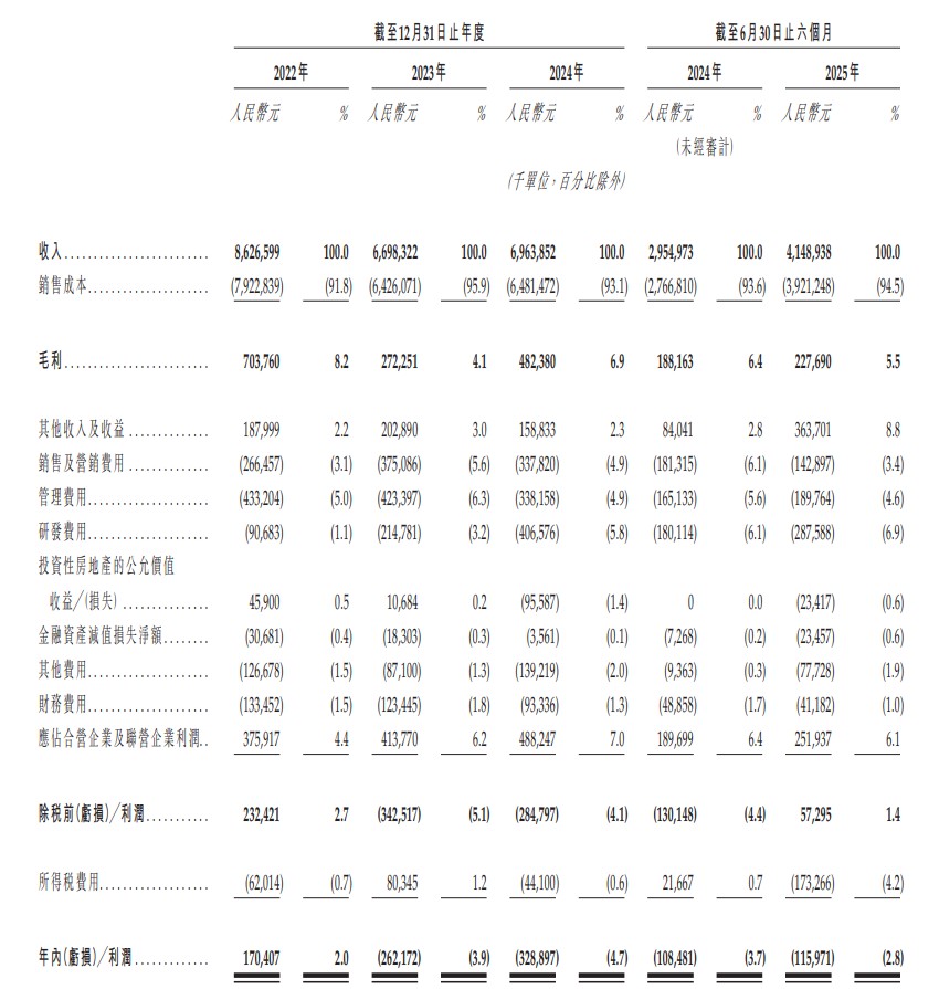 With decades of experience, Qianli Technology has accumulated proven engineering and manufacturing capabilities. Over the years, the company has designed and operated automotive and motorcycle production facilities, maintaining strict quality, safety, and efficiency standards. The company has further enhanced its manufacturing capabilities for new energy vehicles and has developed strong independent automotive design and engineering capabilities covering key areas such as vehicle design and platforms, battery swap solutions, electric drive systems, and intelligent connectivity. In addition, the company's automotive and motorcycle products have consistently grown and are expected to continue to be an important driver of the company's future growth. During the track record period, the company sold 196,900 vehicles and 1.3 million motorcycles. During the track record period, the company's revenue mainly came from the manufacturing and sales of automobiles and motorcycles, accounting for over 85% of the total revenue for each year/period during the track record period In terms of performance, Qianli Technology achieved revenues of approximately RMB 8.627 billion, RMB 6.698 billion, RMB 6.964 billion, RMB 2.955 billion, and RMB 4.149 billion for the fiscal years 2022, 2023, 2024, and the six months ending June 30, 2024 and 2025, respectively; during the same period, the profits/losses were approximately RMB 170 million, -RMB 262 million, -RMB 329 million, -RMB 108 million, and -RMB 116 million.
