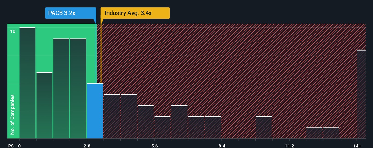 While the first narrative suggests Pacific Biosciences is undervalued, traditional market multiples paint a more complex picture. Its price-to-sales sits at 3.2x, higher than the peer average of 2.3x and above the fair ratio of 2.4x. This means the stock is priced above both peers and where the market might expect it to be. Are investors overlooking something, or could there be more room for adjustment?