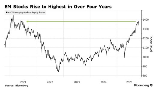 特朗普釋放關税緩和信號 新興市場股市創四年新高