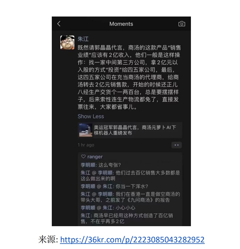如果單純是出於維持上市地位或者幫助投資人退出的 話,商湯是有這個 “作案動機” 的。