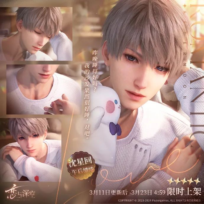 這次白色情人節的 “眸光照映處” 活動是《戀與深空》開服以來的第六個卡池了。