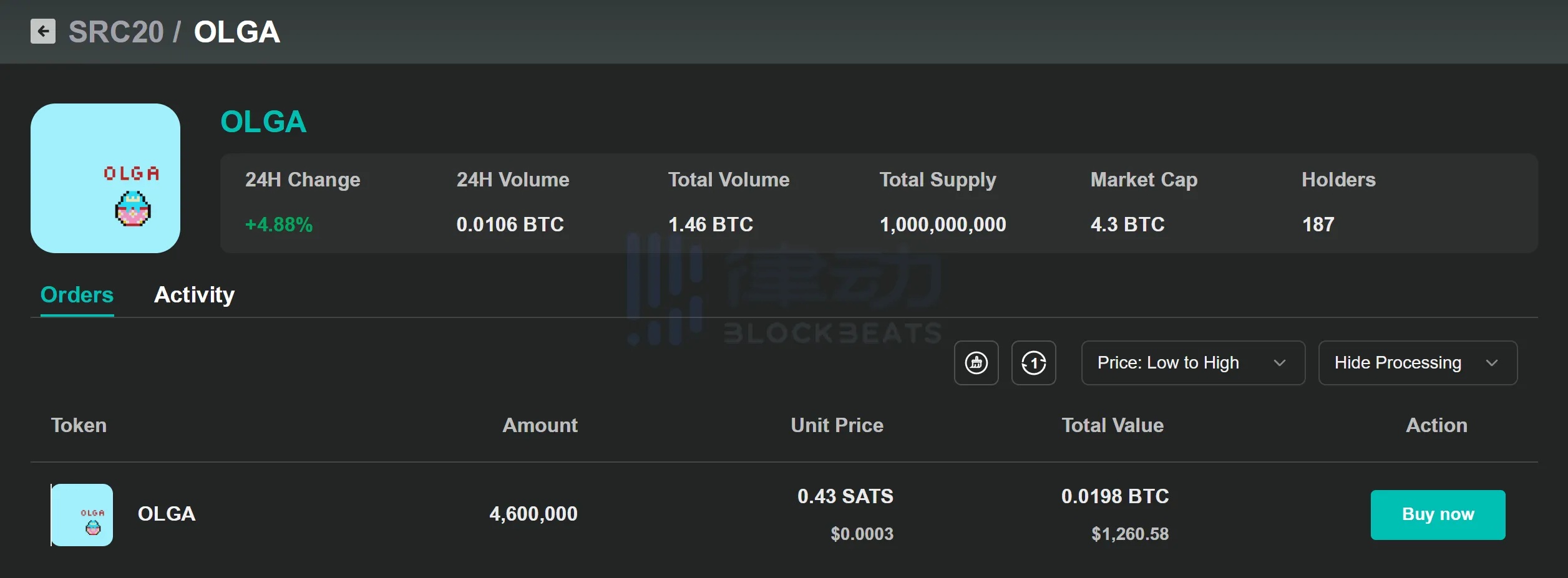 目前 OLGA 還沒有跑出比較優質的資產,值得稍微關注的可能只有同名的 SRC20 Token $OLGA。