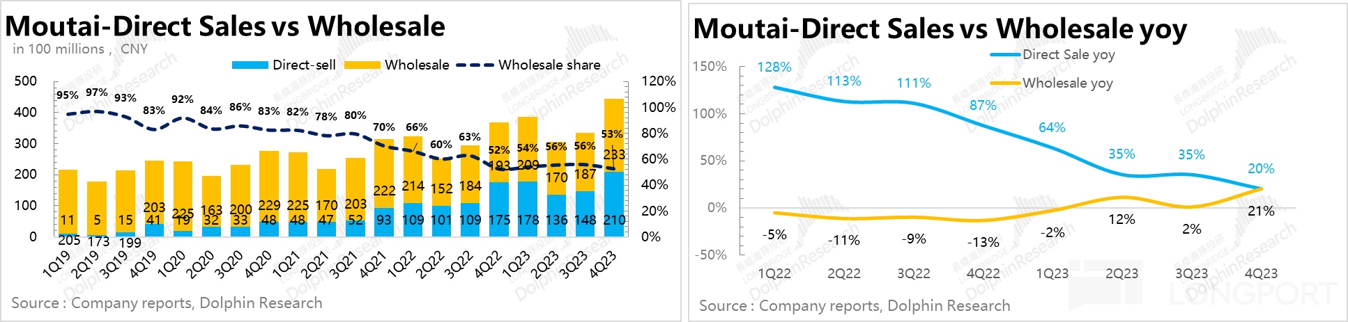 這種情況下,海豚君估計後續茅台酒直營供貨比例佔比的提升可能會逐步放緩,至少 2024 年放緩已是大概率事件。