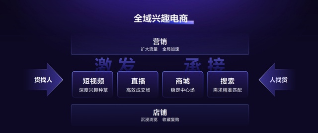 這相當於,短視頻、直播等內容流是用户潛在興趣的激發轉化場,用户在這裏深度種草,高效成交;商城、搜索等主動探索場景是用户已有興趣的承接轉化場,用户在這裏找到了固定路徑,形成習慣,實現精準匹配和復購。用户的各類電商行為沉澱在店鋪裏。營銷解決方案擴大至全域流量,實現全局加速。