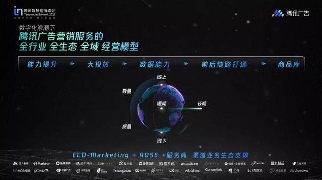 2021 年騰訊智慧營銷峯會上,騰訊廣告明確平台定位是 “企業全域經營夥伴”,並提出三個優勢,簡單總結就是:公私域聯動,線上線下鏈接,以及跳出營銷範疇做生意。