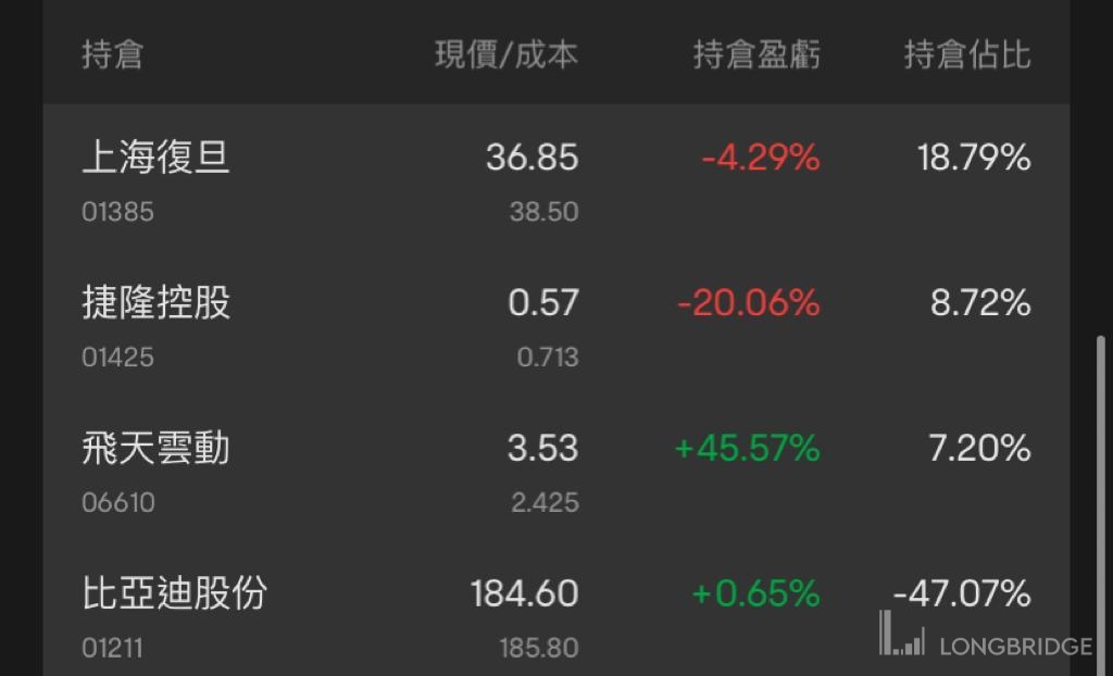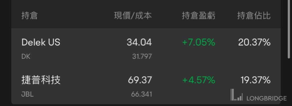 持倉數目:正股 4 隻,沽空 1 隻,無風險持股 1 隻