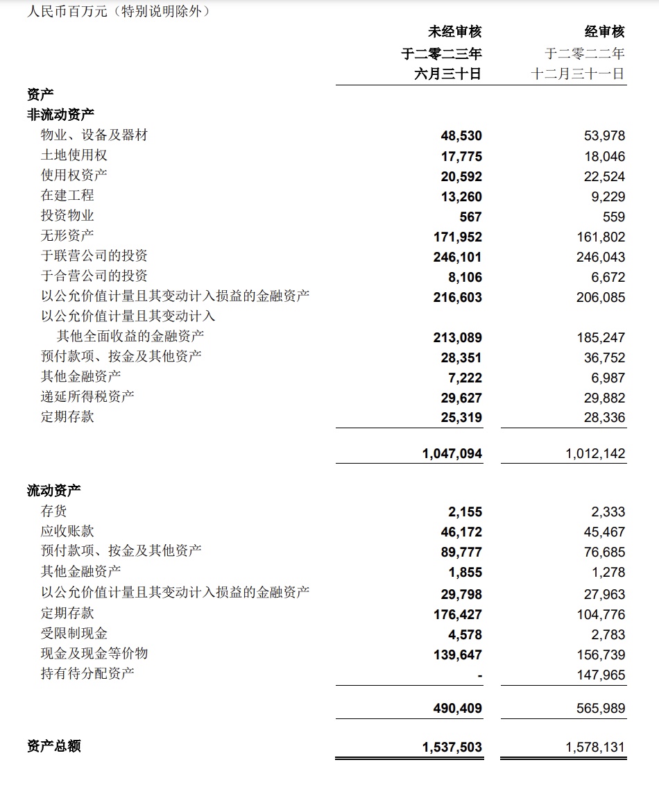 在物業、土地、使用權資產等項目中,數據都出現了下滑。流動資產更是同比下滑了超過 10% 以上。