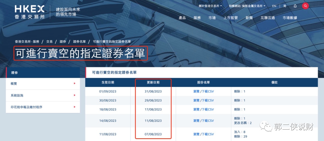 我們可以看到,賣空的證券名單每隔一段時間就會做調整。