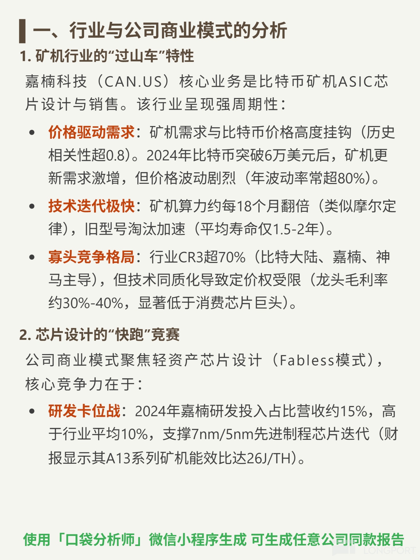 - 主营业务:比特币矿机 ASIC 芯片设计与销售,轻资产 Fabless 模式(无自有晶圆厂)。